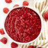 Una reducción de frambuesas, azúcar y especies de Oriente. Ideal para degustar con queso crema en tostaditas, sobre queso Brie ó Camembert, para relleno de crepes, tartaletas ó pasteles, Tiempo de Expiración en conserva 3 años mínimo.